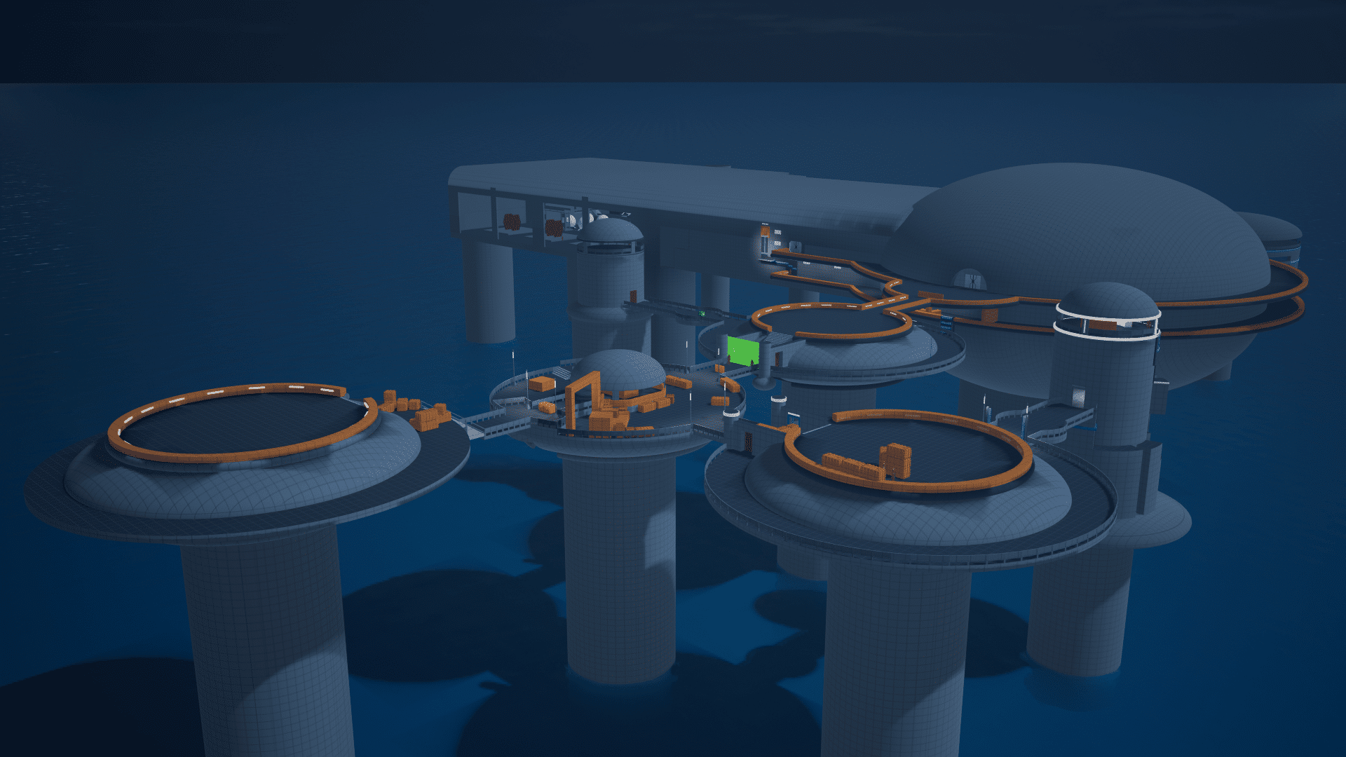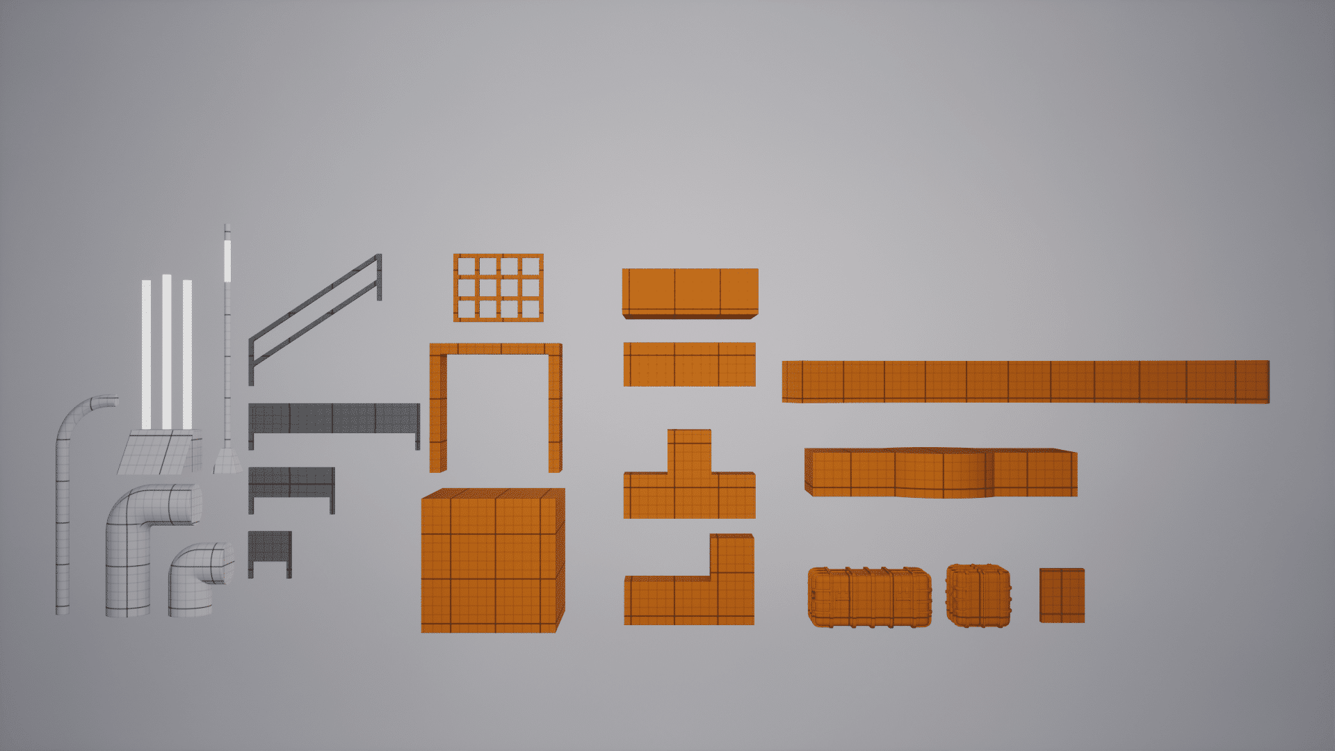 Iterated the modular kit and added unique assets for areas like the lab and port.