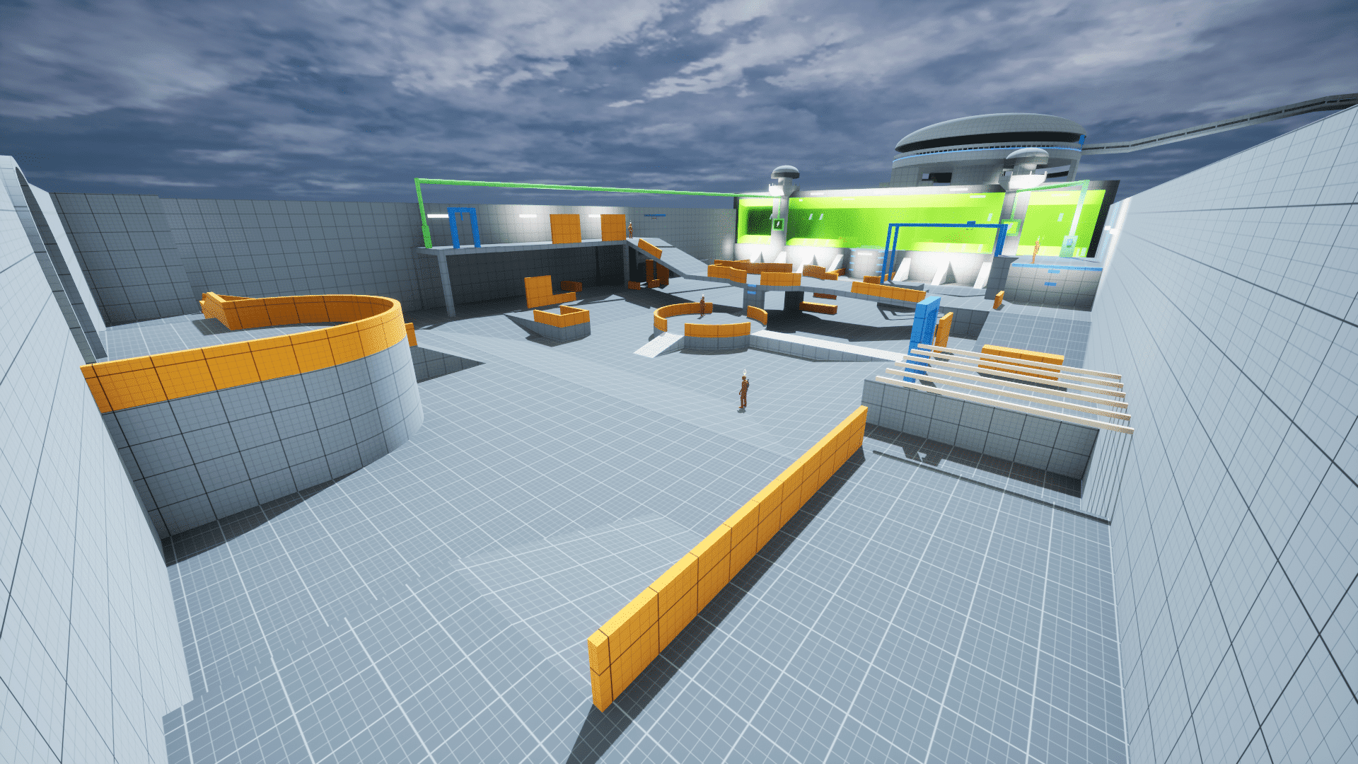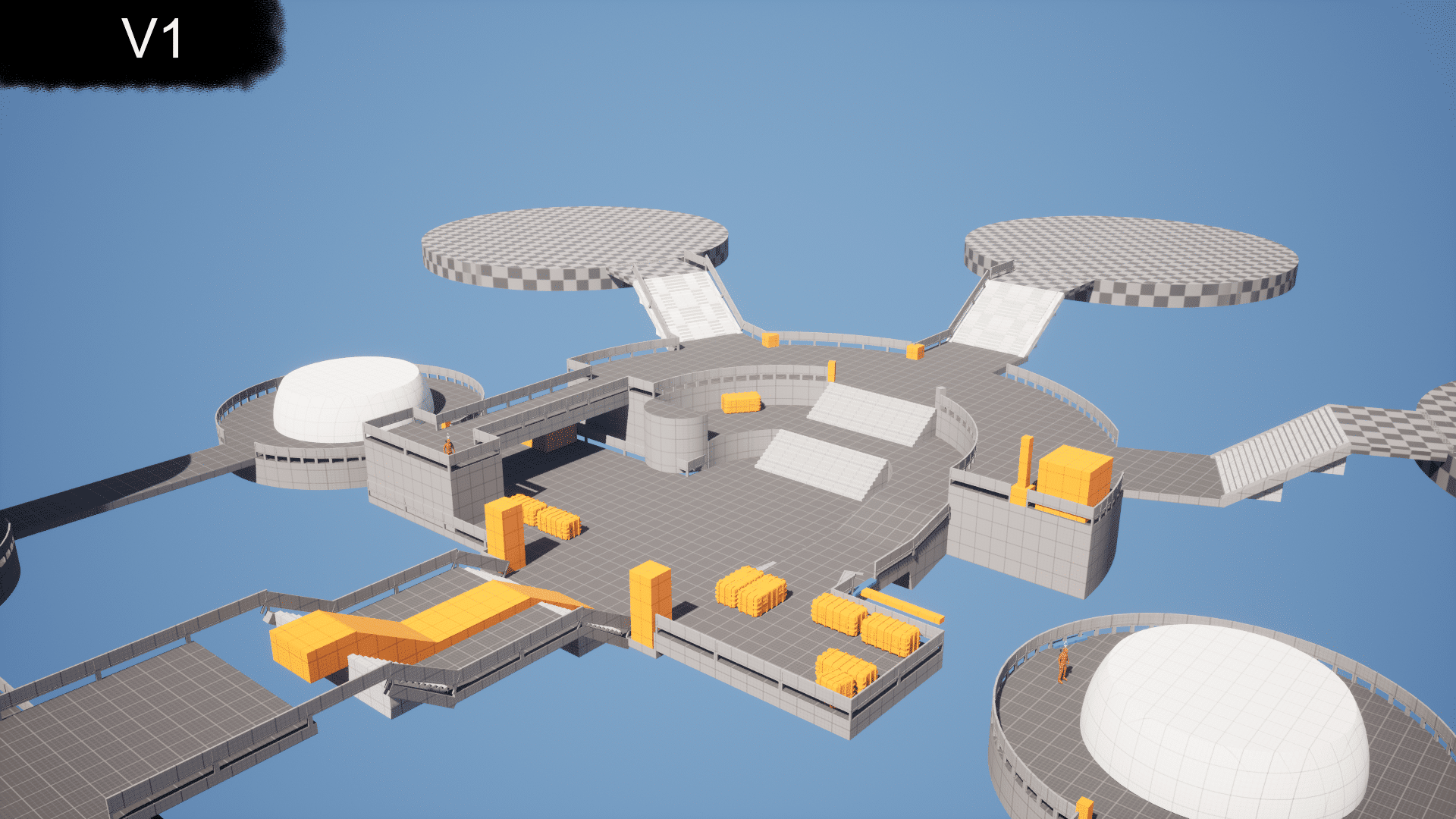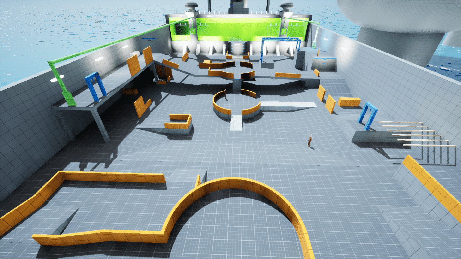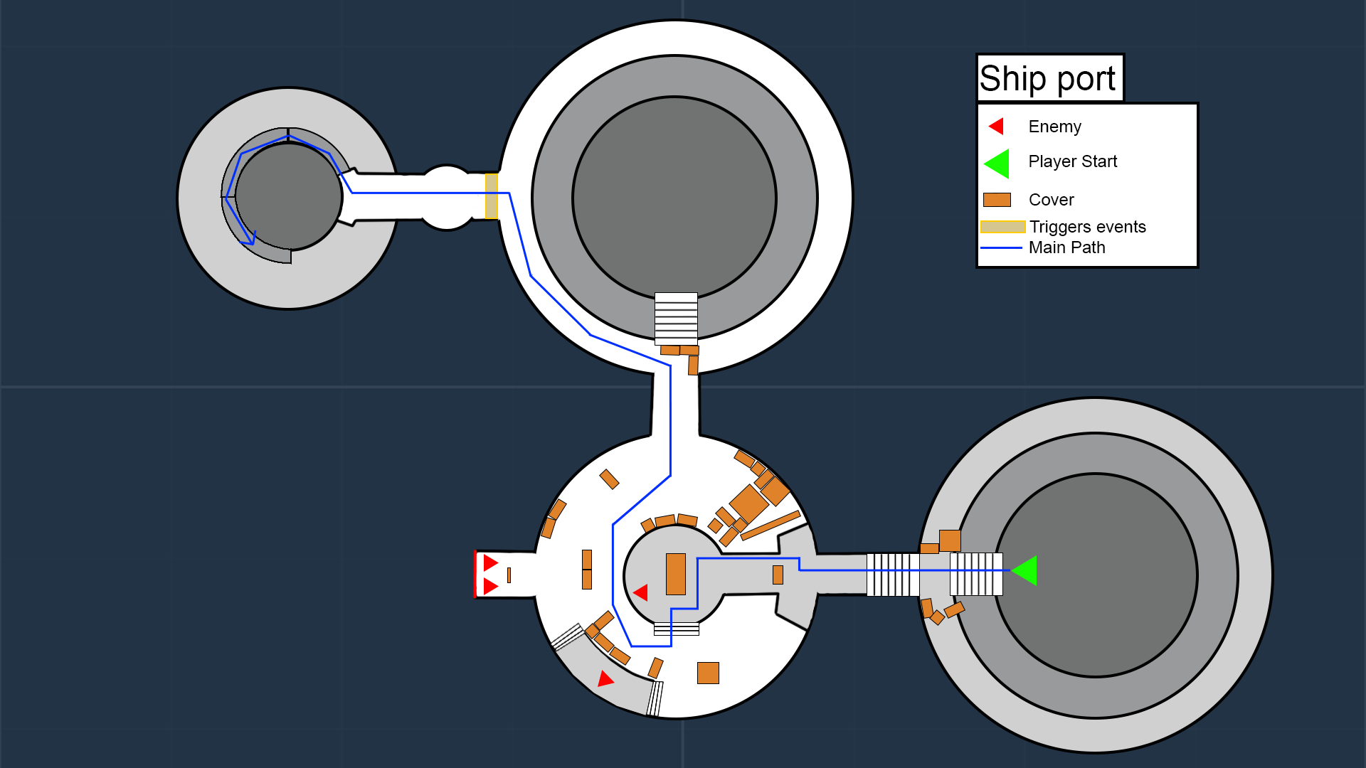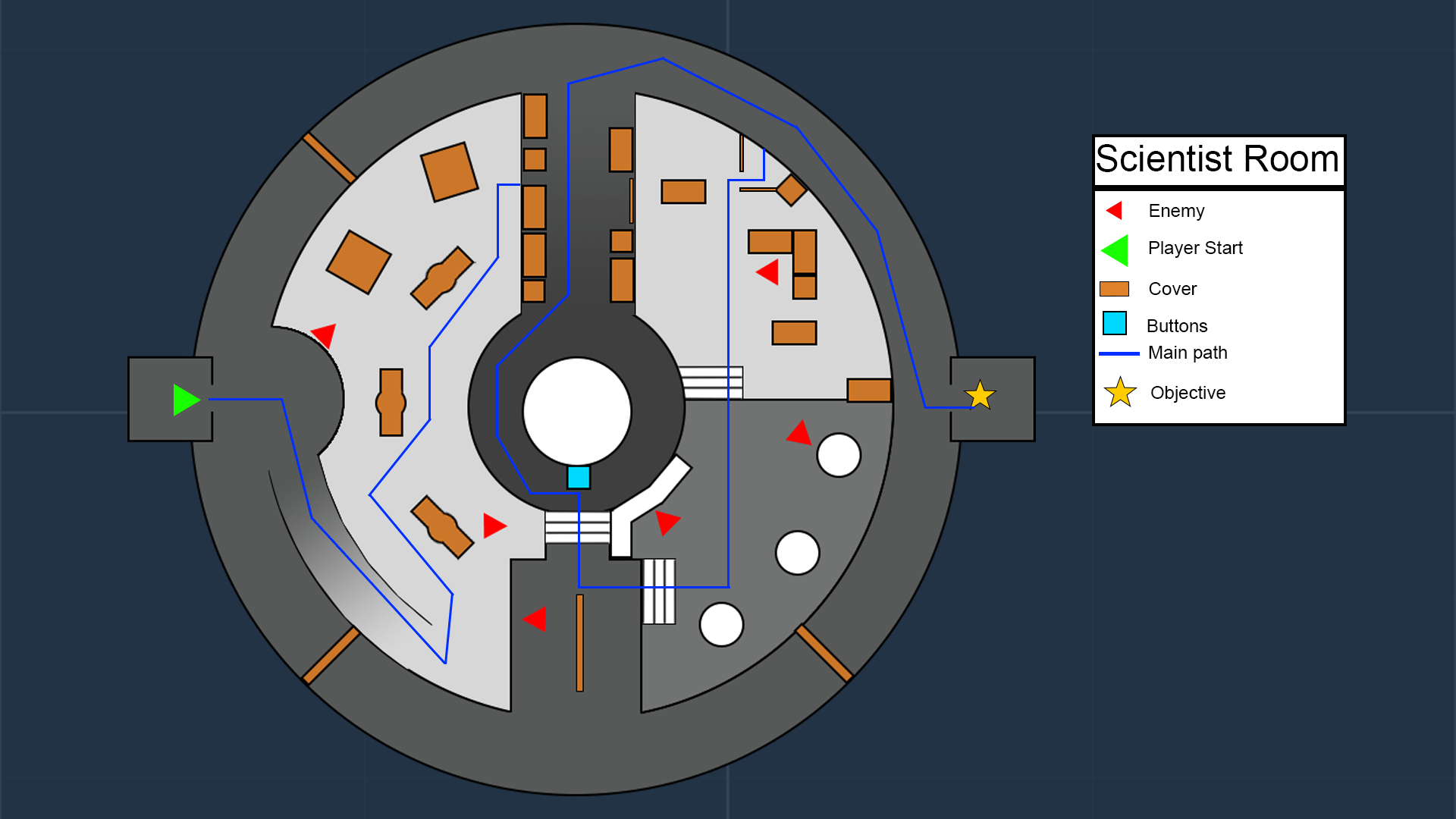 - It’s circular shape naturally influenced the player’s path, which I structured in a half-moon pattern to encourage full use of the available space.