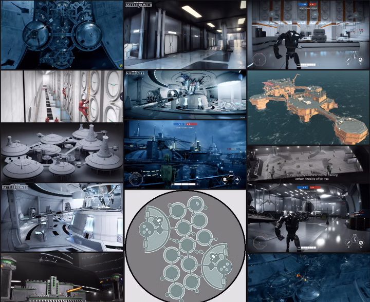 - Main reference: Kamino map from Battlefront II — large, open spaces for battlefield gameplay.