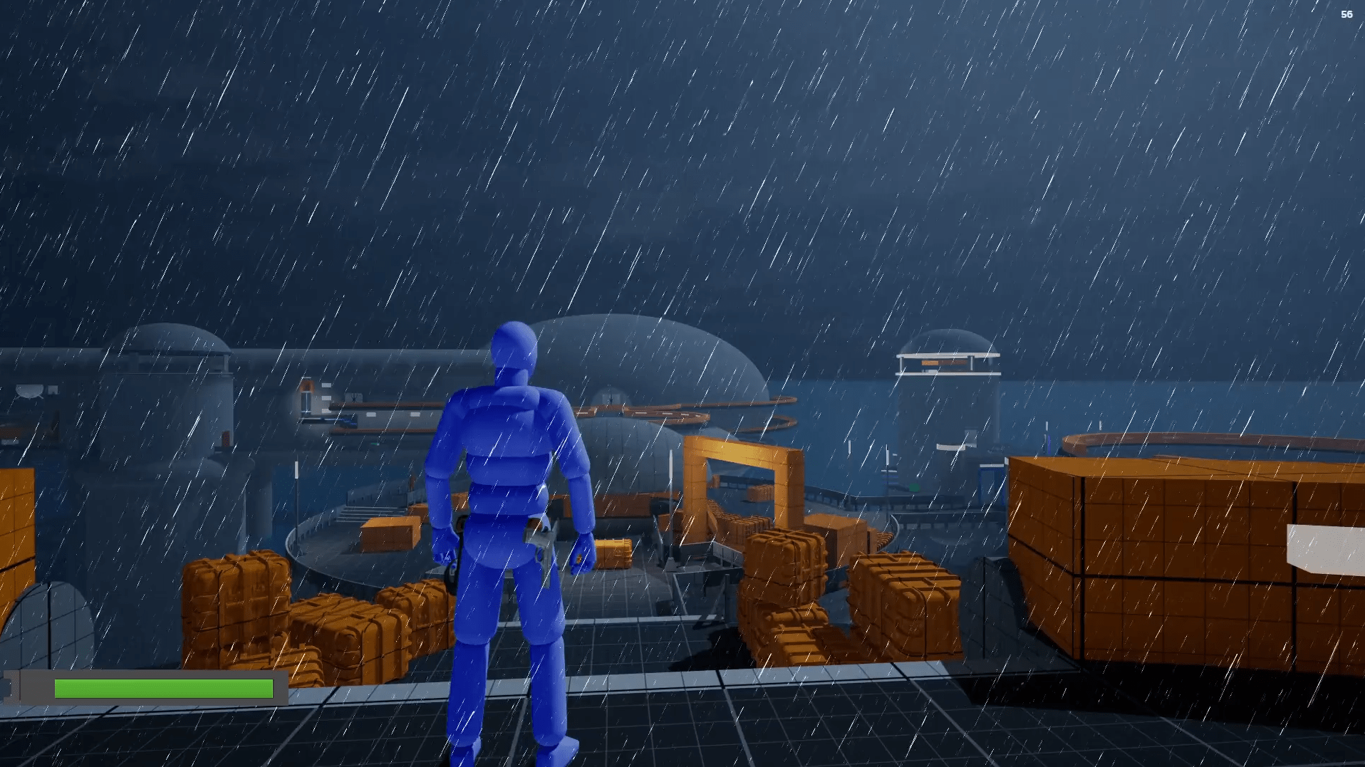 - Gameplay loop: reach the tower, press a button, grab crate to progress.