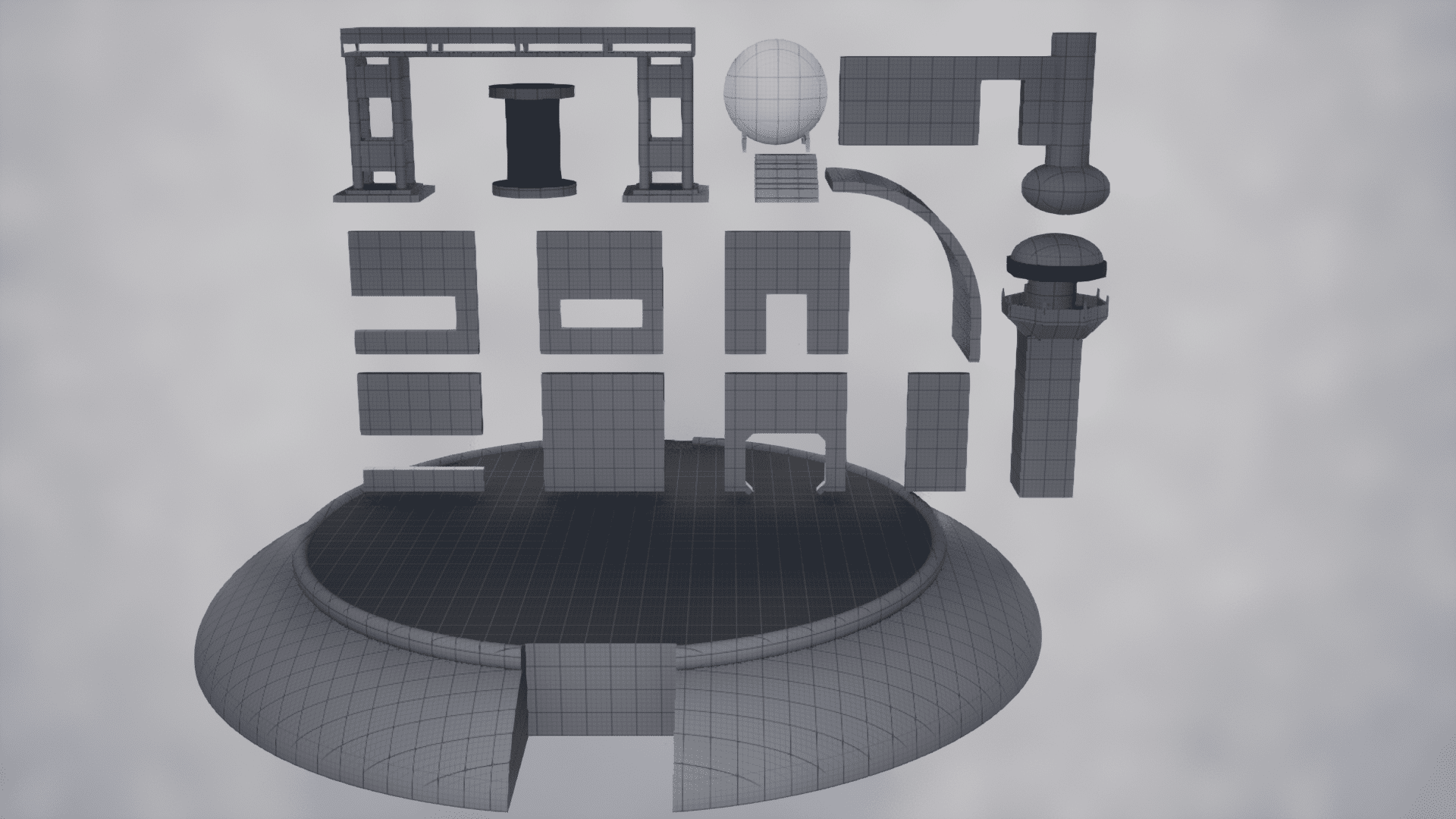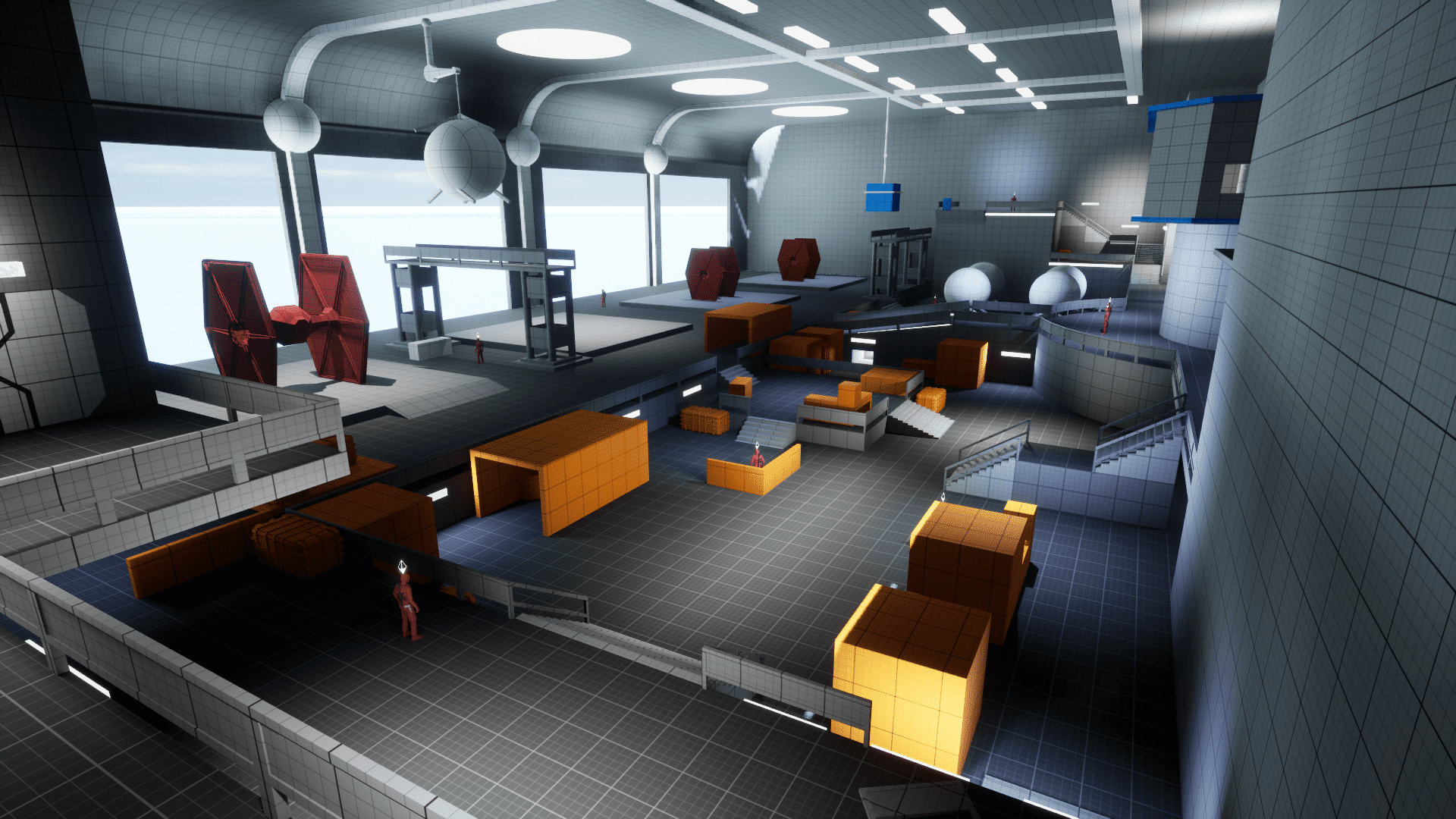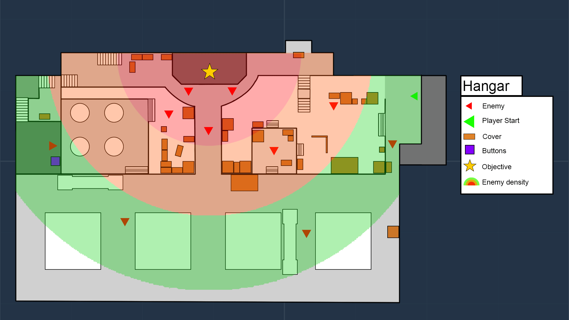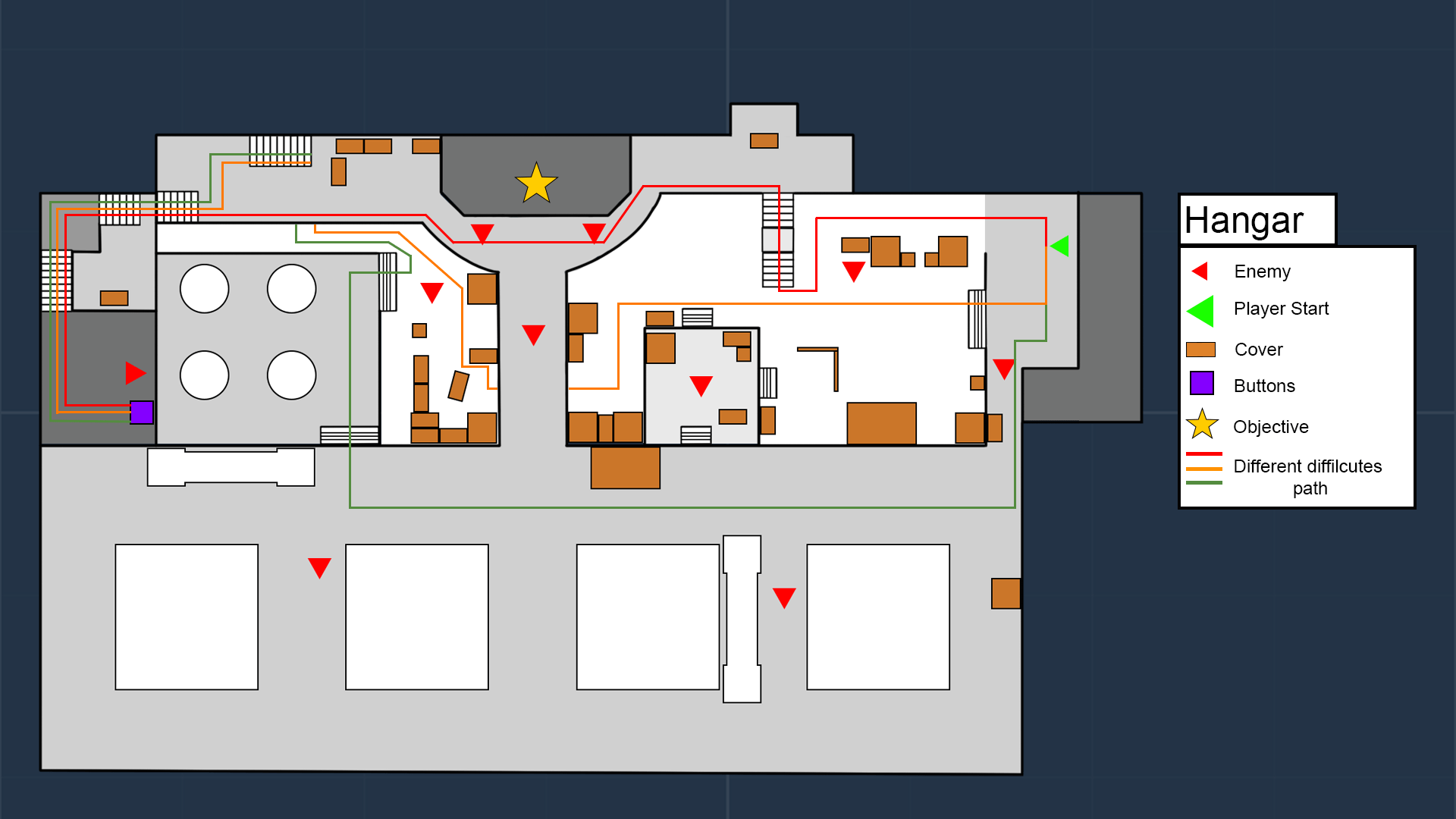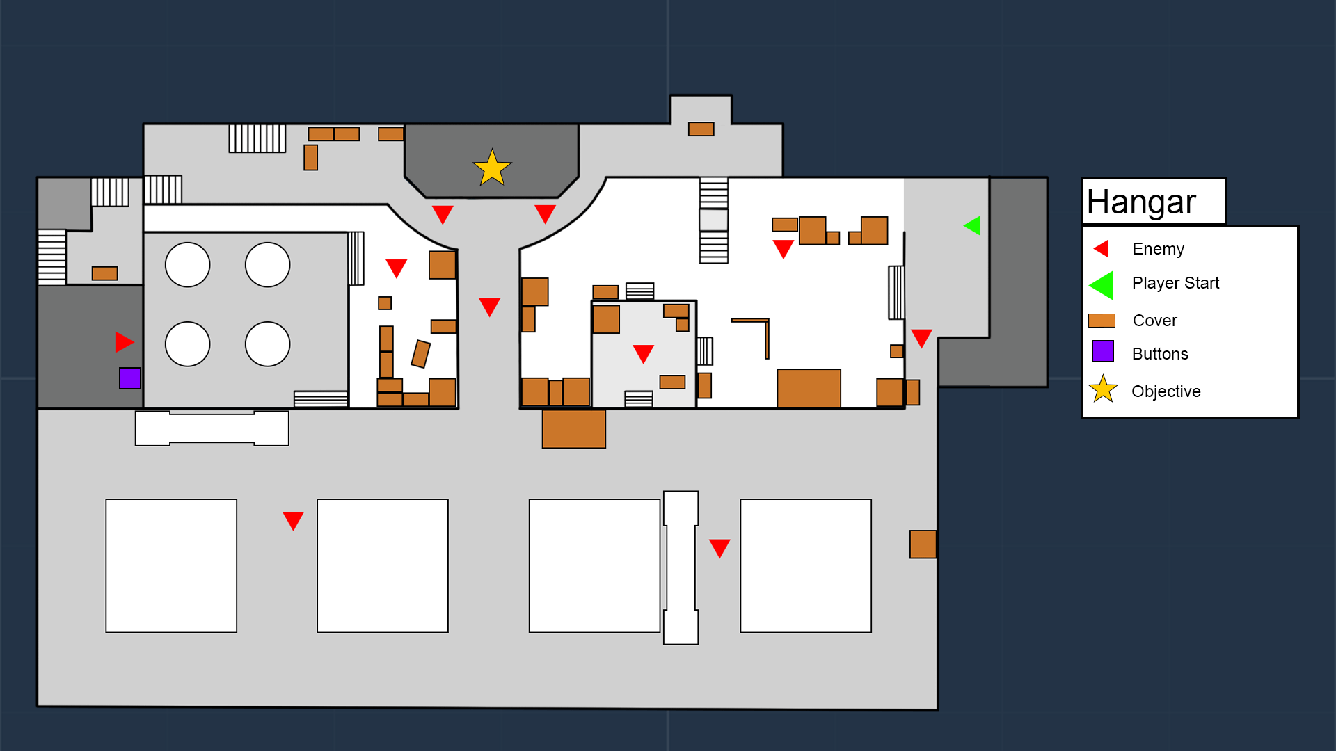 - I envisioned the hangar as an outpost, where the player’s objective is to exit from the top.
